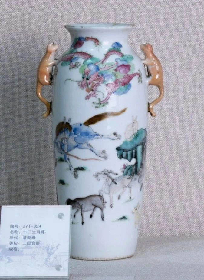清乾隆粉彩生肖紋獸耳瓷尊