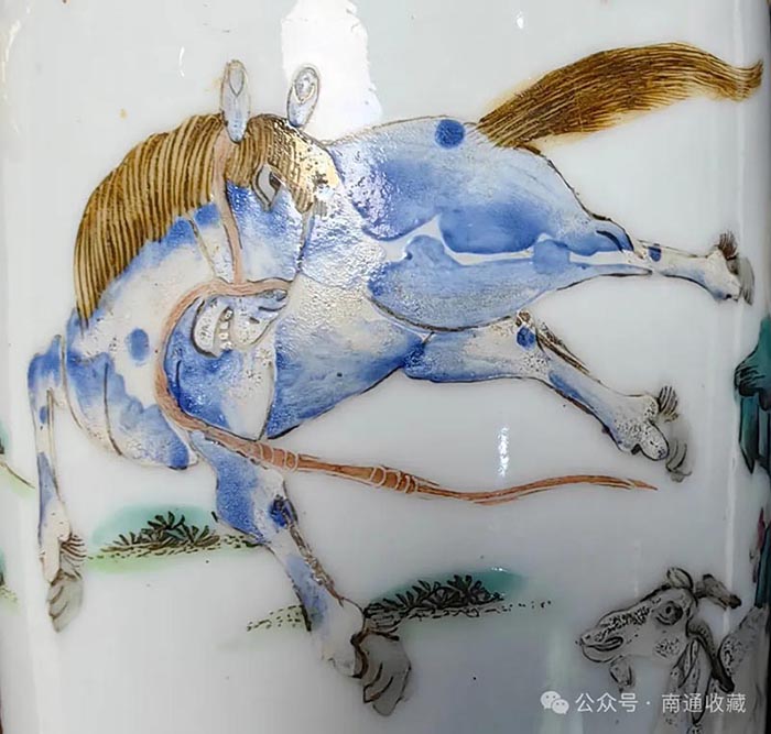 瓷尊高21厘米,口徑6.5厘米,整體釉面潔白純凈,胎質細膩堅致,彩繪鮮亮,層次豐富。十二生肖紋的畫風具有中國年畫的風格,整個畫面歡快又靈性。